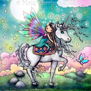 Fairy Print Whimsical Fairy and Unicorn Friend Fantasy Art by